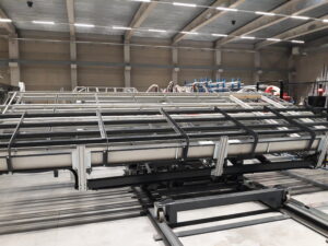 001TN enables the automatic transfer and verticalisation of frames, streamlining internal logistics between welding, storage, and assembly.