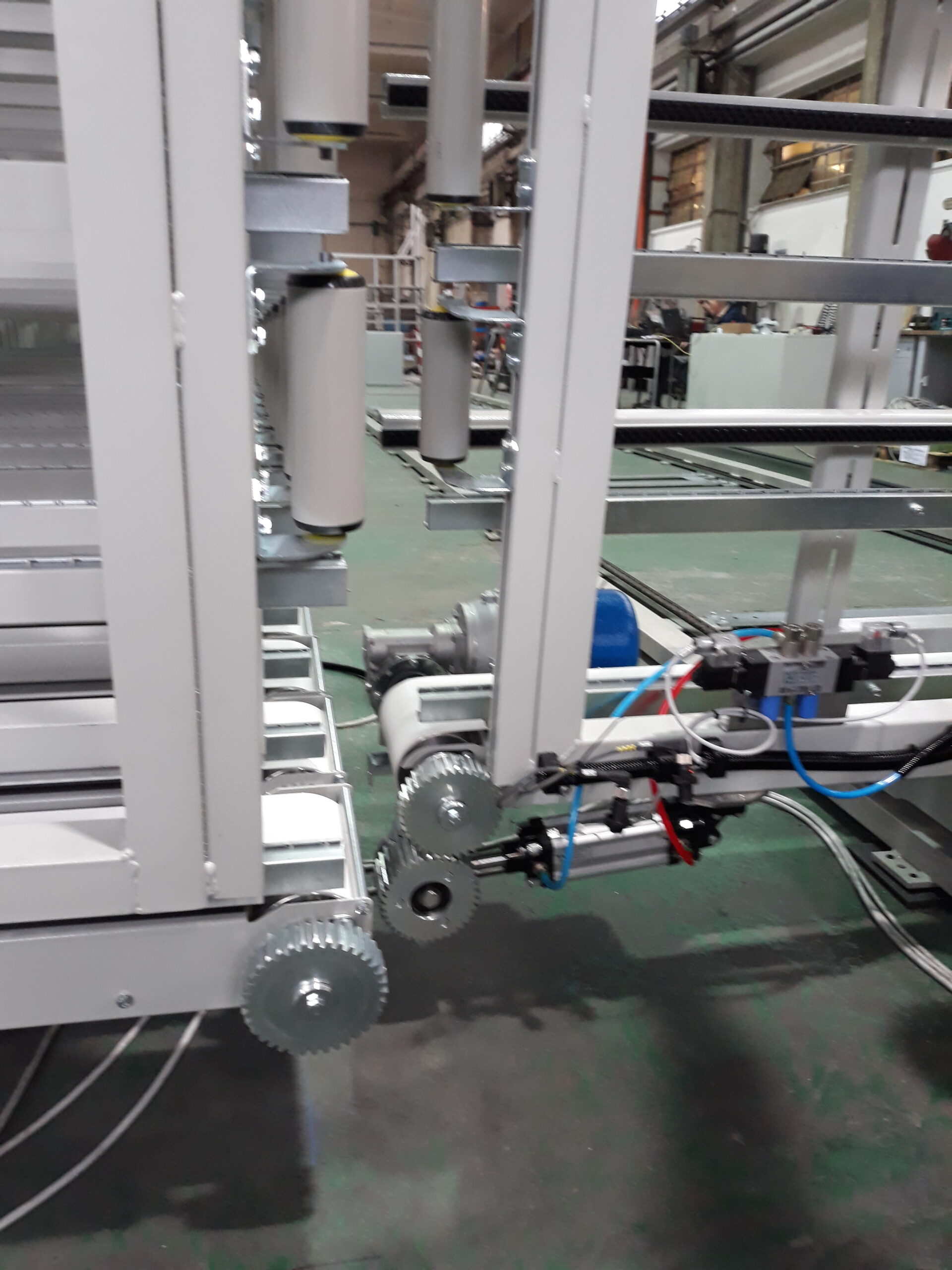 - Rack and pinion system for driving the warehouse conveyors